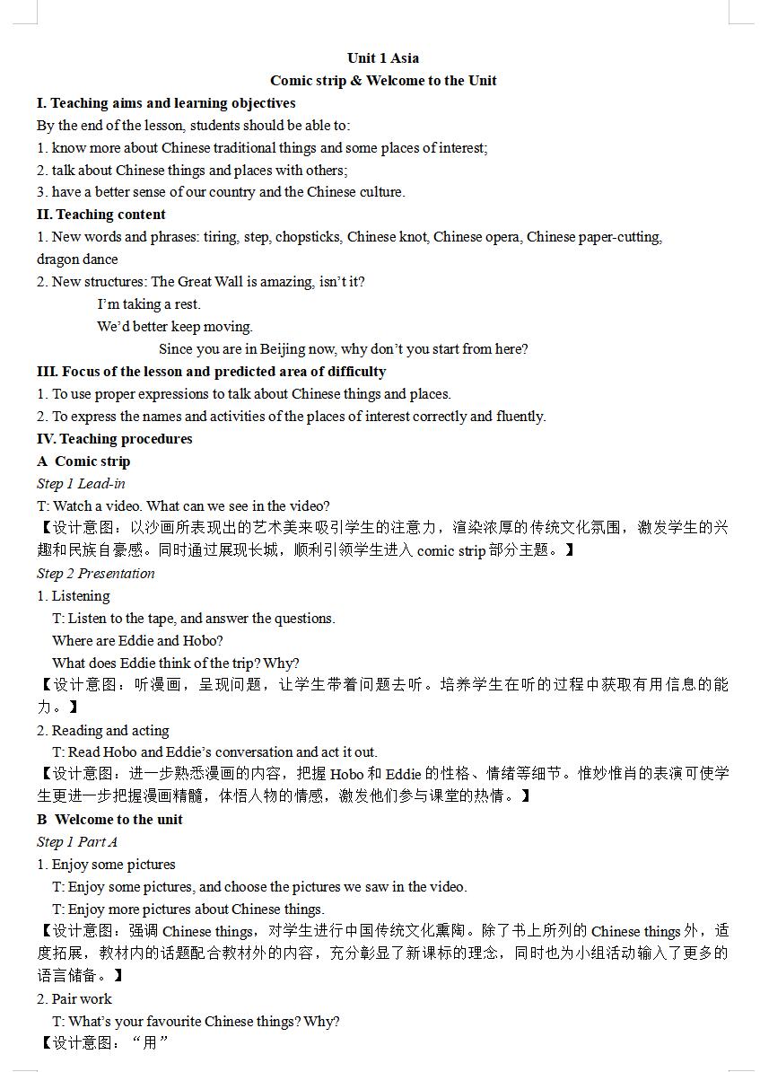 牛津译林版九下英语Unit 1 Asia Welcome to the unit教案(下载版)