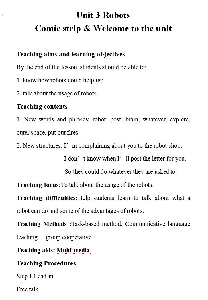 牛津译林版九下Unit3 Robot Welcome to the unit 教案(下载版)