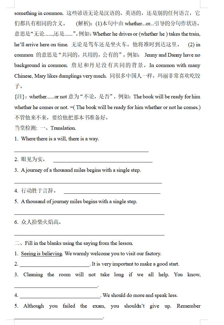 冀教版九下Unit 8 Lesson 44 Popular Sayings教案(图片版)(2)
