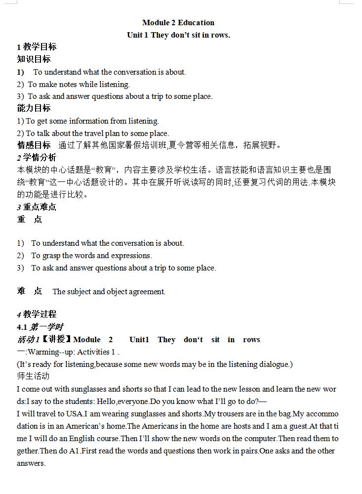 外研版英语九下Module 2 Unit 1 教案(图片版)