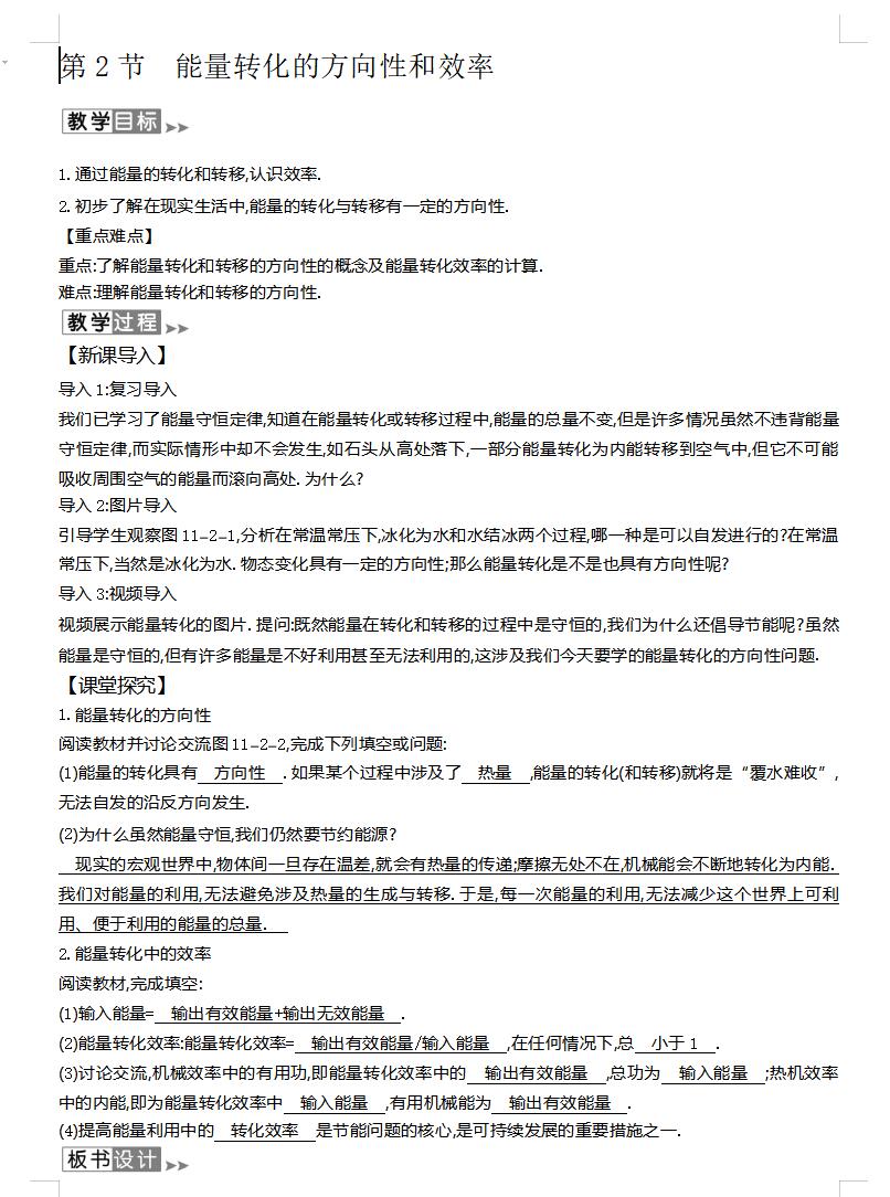 2023年教科版物理九下11.2能量转化的方向性和效率教案(下载版)