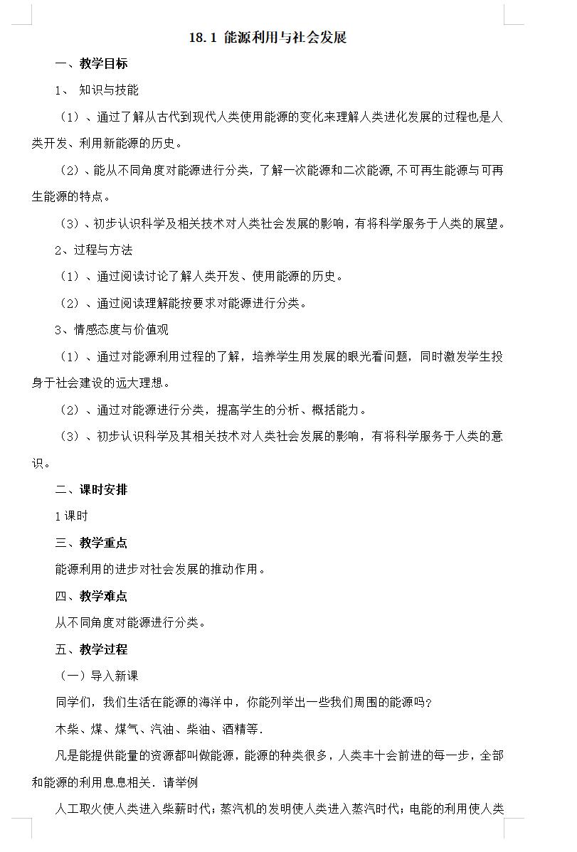 苏科版物理九下18.1能源利用与社会发展教案(图片版)