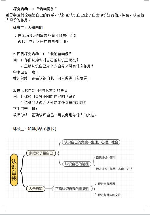 统编版七上道德与法治3.1认识自己教案(图片版)(2)
