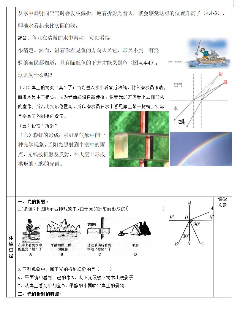 2024年人教版物理八上4.4光的折射教案(图片版)(3)