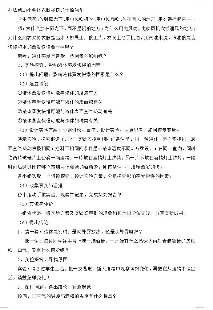 北师大版八上物理汽化和液化教案(图片版)(2)