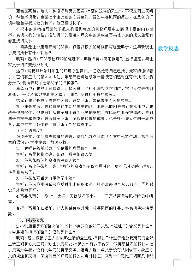 部编版九上语文17《孤独之旅》(第2课时)教案(图片版)(3)